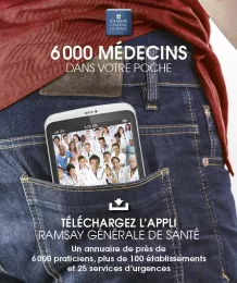 Un spécialiste ? Une clinique ? Un service d’urgences ?… Ramsay Générale de Santé a développé une appli permettant de trouver les coordonnées de près de 6 000 médecins spécialistes, plus de 110 cliniques et hôpitaux privés et 25 services d’urgences.
